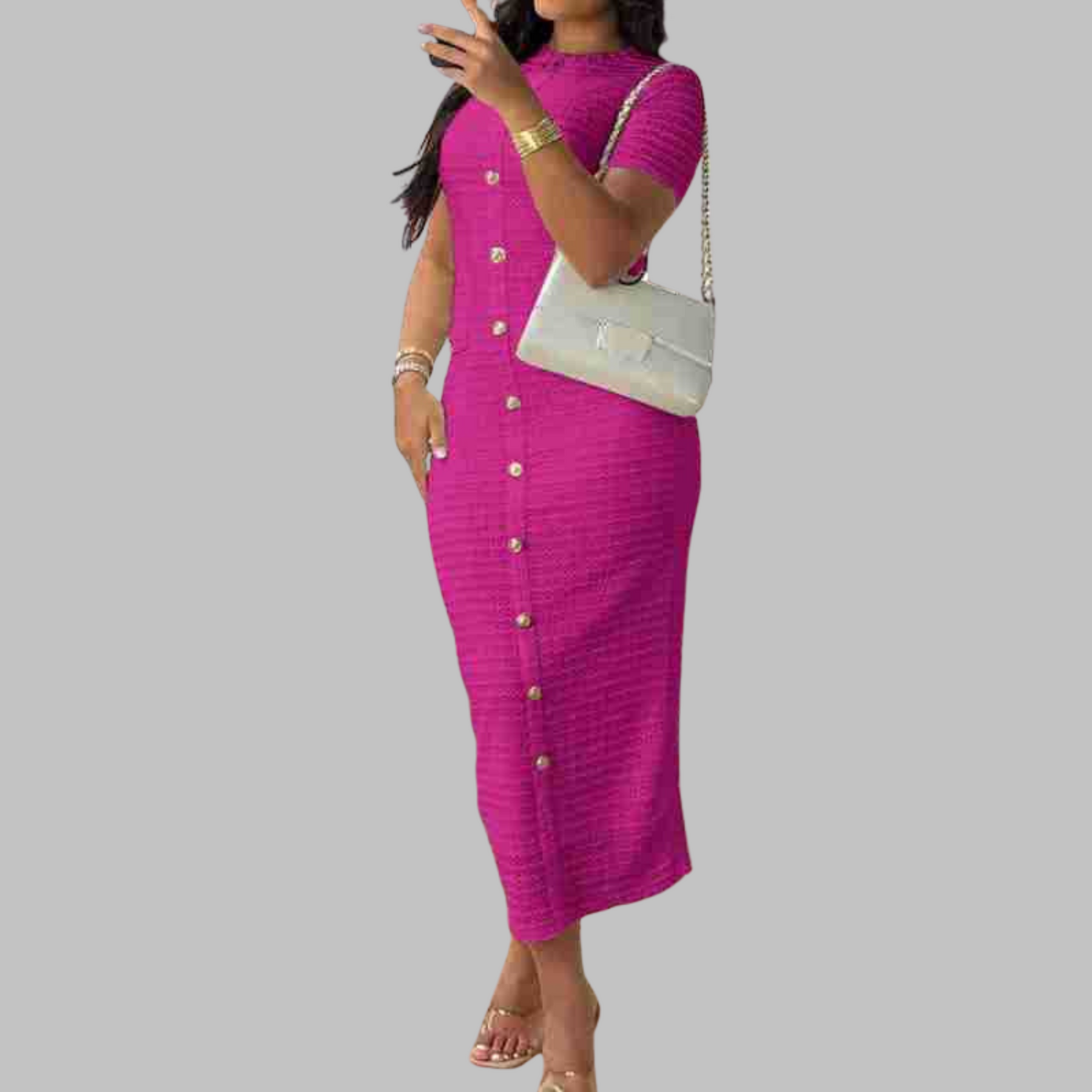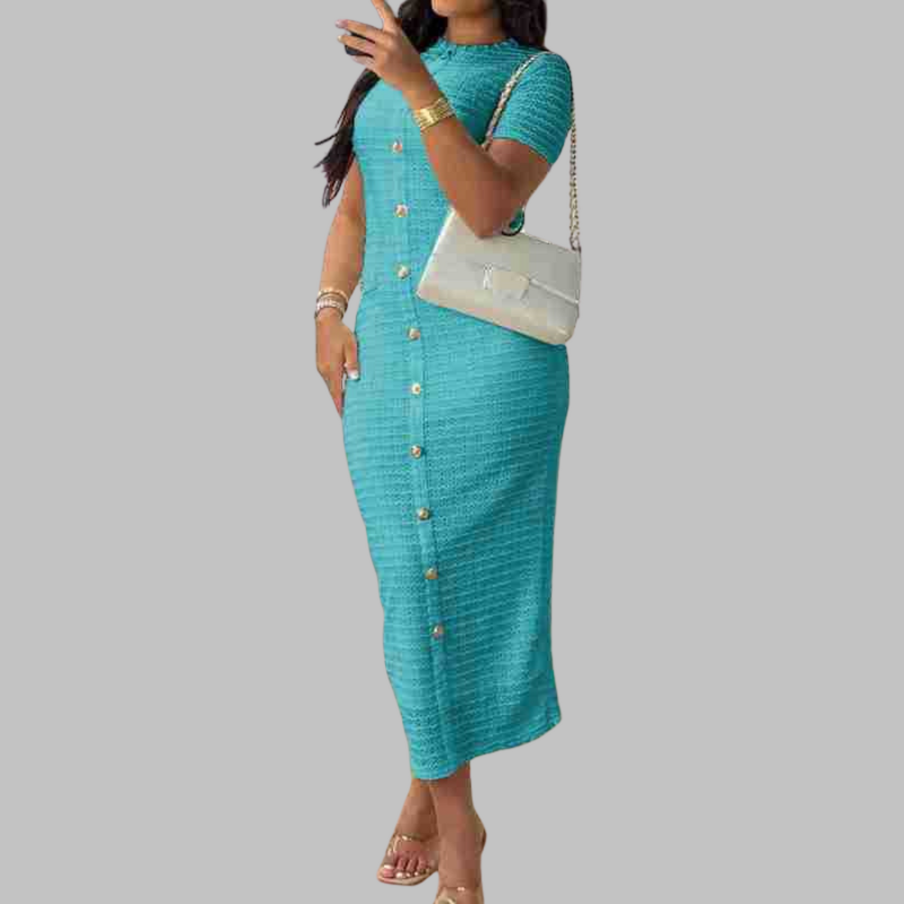 Embrace the essence of elegance with the RACHEL™ Elegant Round Neck Fake Button Dress. This timeless piece perfectly blends classic charm with modern flair. Crafted with subtle details, its graceful silhouette and understated elegance make it the perfect choice to wear for any occasion, easily transitioning from day to evening. Its graceful and sophisticated design makes it an ideal option for any event, day or night.